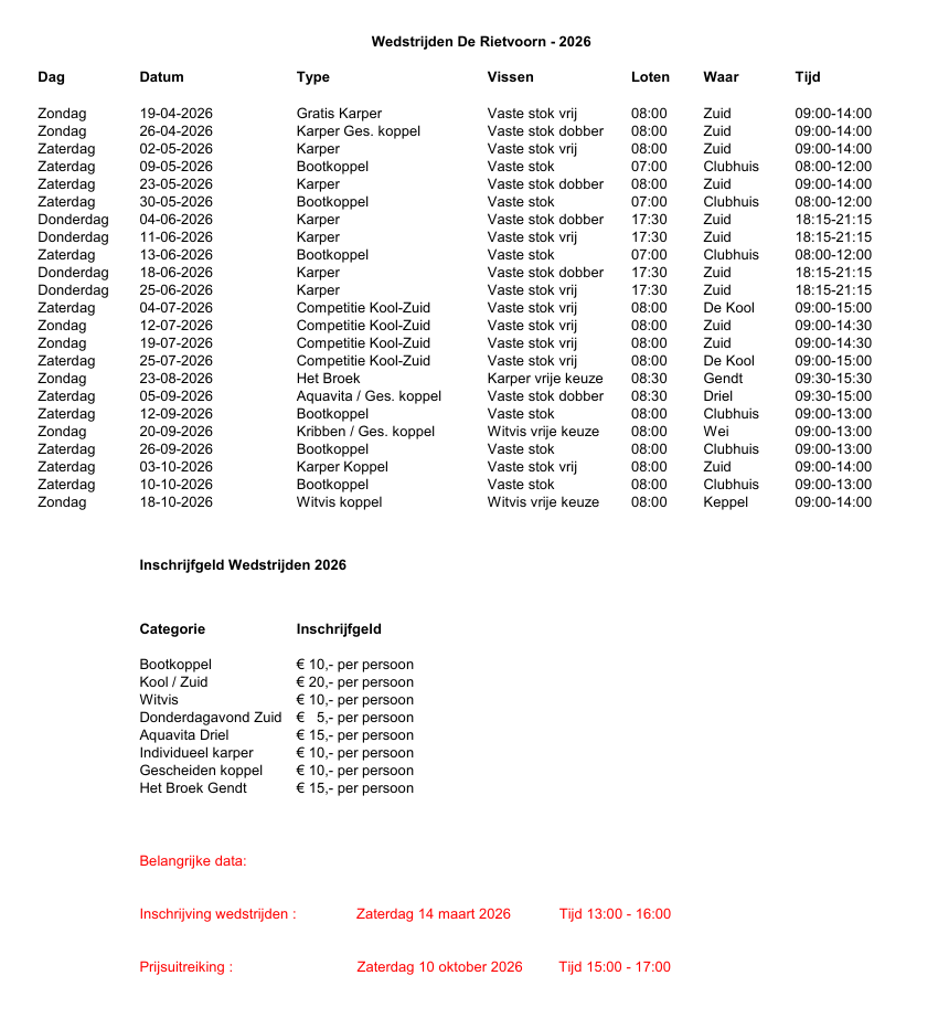 Wedstrijden 2026